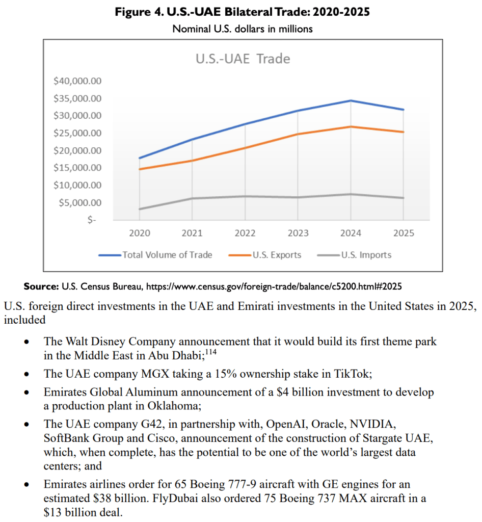 While the Trump administration has been cosy with the UAE, including $1.4 billion of weapons sales in 2025, $200 billion of UAE investment in the USA, and a recent WSJ story detailing a UAE leader’s $500 million stake in President Trump’s family crypto company. These numbers are crumbs in comparison to the first Trump Administration’s weapons sale to UAE worth $23.7 billion in 2020 and the historical numbers ($33.8 billion from 1954-2023) including those of recent years, below: